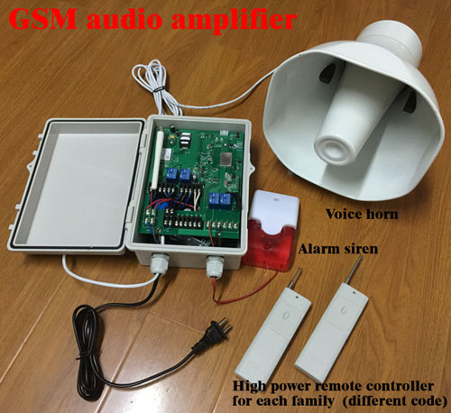 GSM-Horn Alarm controller is best designed for neighbor safety,community safety and also it can be used for community propaganda. When any emergency things happen, can call the controller with large horn speakers to help deter criminals. Every family has one remoter for emergency help and trigger the Siren/Strobe with light.
